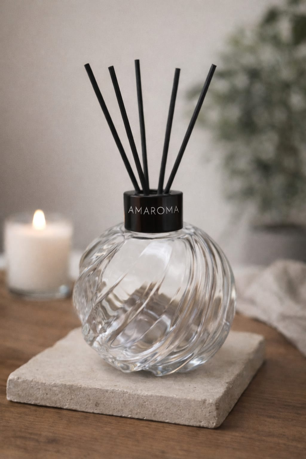 Seu formato escultural faz do Frasco Orbit uma peça de destaque, ideal para quem busca um difusor que una arte, elegância e sensorialidade e mantendo a essência minimalista da Amaroma.
