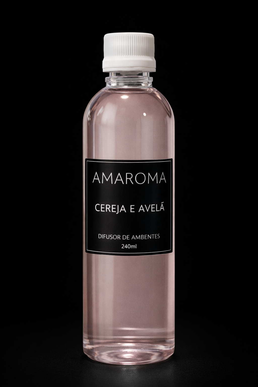 Nosso combo Refil 240ml + 6 varetas na fragrância Cereja e Avelã é perfeito para quem ama um ambiente acolhedor, romântico e sofisticado.