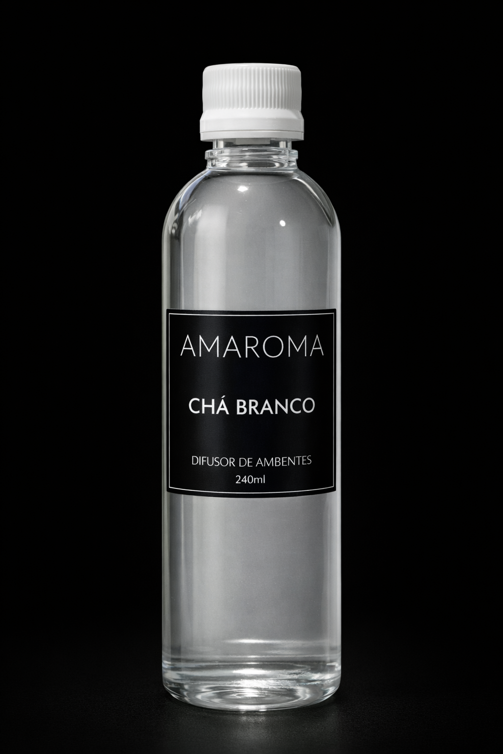 A fragrância Chá Branco, presente no combo Refil 240ml + 6 varetas, entrega leveza, equilíbrio e bem-estar ao ambiente.